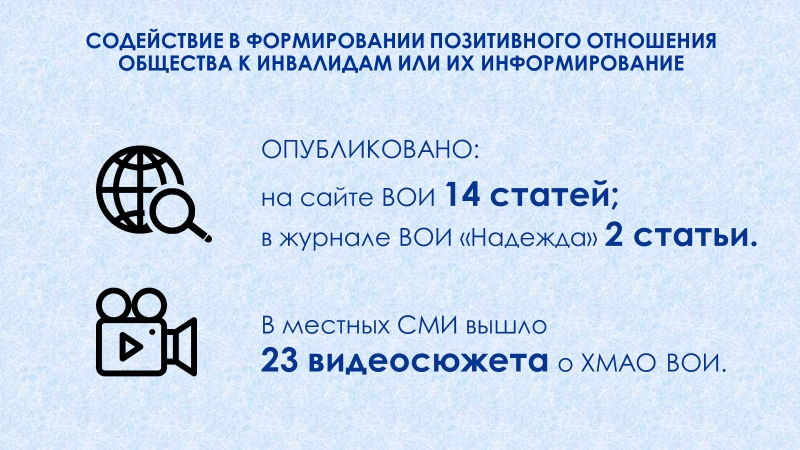 Председатель ХМАО ВОИ Роза Ивашева рассказала о работе организации и о дальнейших планах: «Ханты‑Мансийская региональная организация ВОИ продолжает развиваться, опираясь на опыт и внедряя новые инициативы. Её главная цель — создание инклюзивного общества, где каждый человек, независимо от физических возможностей, имеет равные права и возможности для самореализации». Председатель ХМАО ВОИ выразила благодарность органам власти в муниципалитетах за взаимодействие и помощь обществам инвалидов.