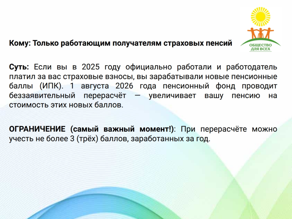 1 АВГУСТА 2026: АВТОМАТИЧЕСКИЙ ПЕРЕРАСЧЕТ ПЕНСИЙ ДЛЯ РАБОТАЮЩИХ ПЕНСИОНЕРОВ