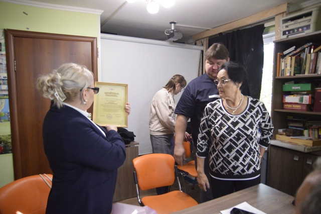 Председатель ХМАО ВОИ Роза Ивашева, в торжественной обстановке вручила Светлане Башмаковой Почетную Грамоту ВОИ, поблагодарила их за работу по проведению культурно-развлекательных мероприятий для граждан с инвалидностью, на территории ХМАО-Югры.
