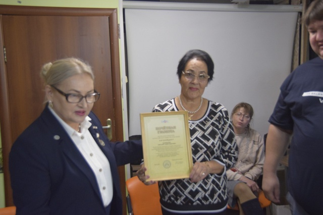 На Правлении Ханты-Мансийской городской местной организации Ханты-Мансийской общественной региональной организации общероссийской общественной организации «Всероссийское общество инвалидов» была вручена Почетная Грамота Всероссийского общества инвалидов художественному руководителю вокального ансамбля «ВДОХНОВЕНИЕ» городского общества инвалидов Светлане Александровне Башмаковой.