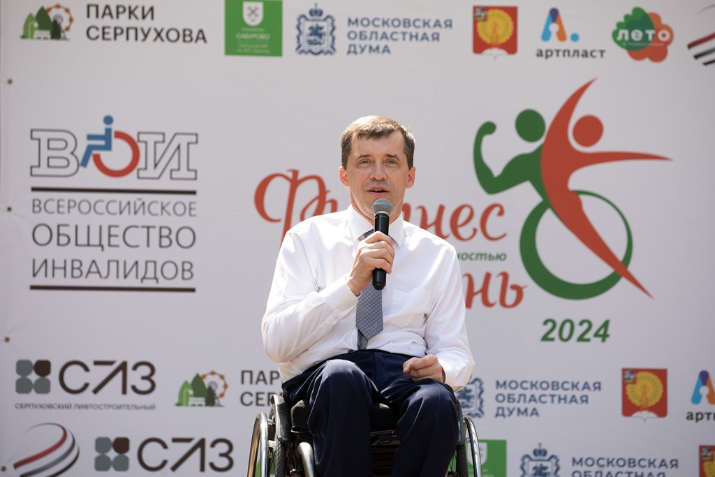 12 июля в подмосковном Серпухове на стадионе «Спартак» и в Парке культуры и отдыха имени Олега Степанова прошли мероприятия в рамках Открытого межрегионального спортивного праздника Всероссийского общества инвалидов «Фитнес-день для людей с инвалидностью». Утром на обновленном после реконструкции стадионе состоялся показательный легкоатлетический забег «Равные возможности. Спорт». На дистанциях 100, 200 и 400 метров выступили российские паралимпийцы и детская команда «Отчаянные мечтатели», воспитанники заслуженного тренера России Ирины Громовой. Центральным же событием стало проведение межрегионального спортивного праздника «Фитнес-день для людей с инвалидностью». Несмотря на жару, в Парк культуры и отдыха приехали более 200 участников, в том числе ветераны специальной военной операции. Здесь прошли соревнования по настольному теннису, дартсу, лазертагу, пулевой стрельбе, баскетболу, бочча, новусу и фигурному вождению на колясках. Большой популярностью пользовались и состязания по настольному троеборью: корнхоллу, джакколо и кульбутто.Участников Фитнес-дня приветствовали председатель ВОИ, депутат Государственной Думы ФС РФ, паралимпийский чемпион Михаил Терентьев; председатель Серпуховской городской организации МОО ВОИ, депутат Мособлдумы Татьяна Карзубова; заслуженный тренер России, старший тренер паралимпийской сборной по лыжным гонкам и биатлону Ирина Громова, шестикратный паралимпийский чемпион, президент фонда поддержки инвалидов «Единая страна» Сергей Шилов.