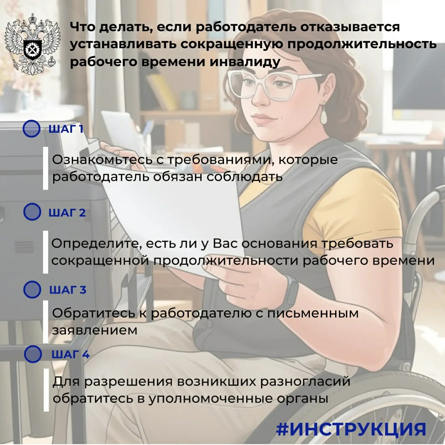 - ШАГ — Ознакомьтесь с требованиями, которые работодатель обязан соблюдать в отношении установления продолжительности рабочего времени инвалиду