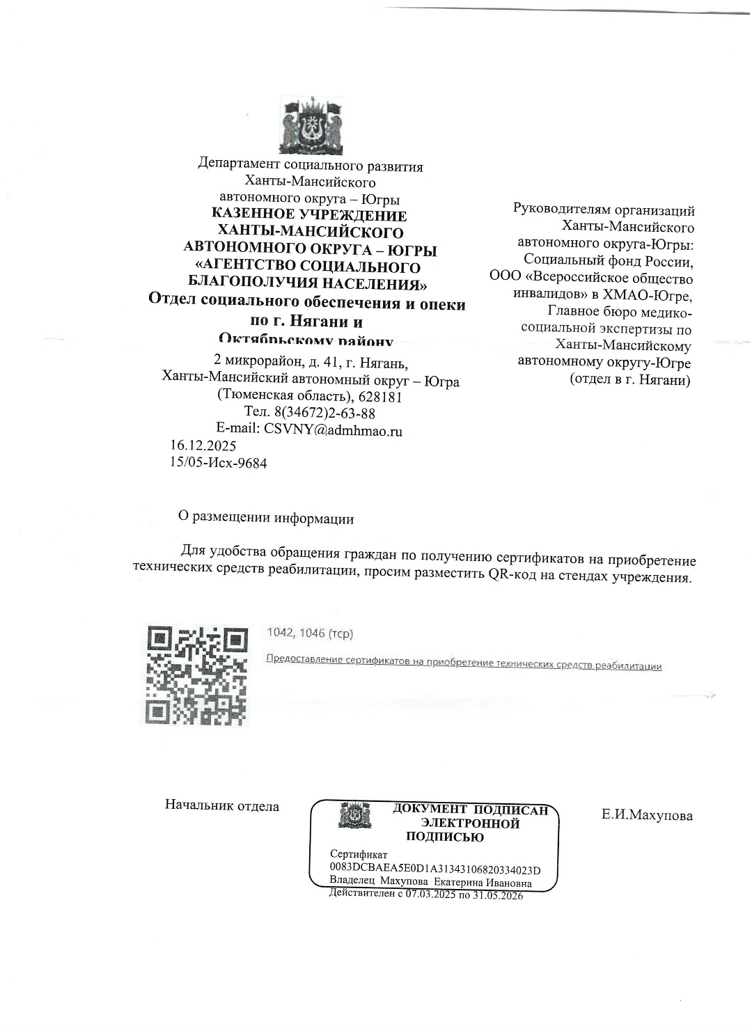 Для удобства обращения граждан по получению сертификатов на приобретение ТСР 25 декабря 2025 Размещаем QR-код.