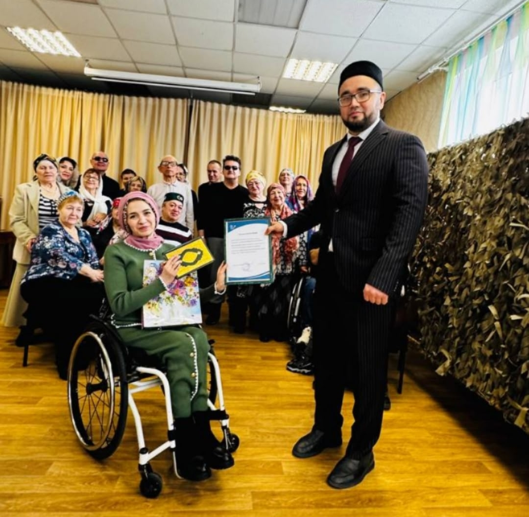 В этот день руководитель СООИ ВОИ, Тюлегенова Гузель Марсилевна, вручила хазрату благодарственное письмо и Коран-священную книгу мусульман, от нашей организации. Этот жест поддержания наших общих традиций, духовных ценностей, связи поколений, а также считается ценным подарком для мусульманина, символизирующий уважение и заботу.
