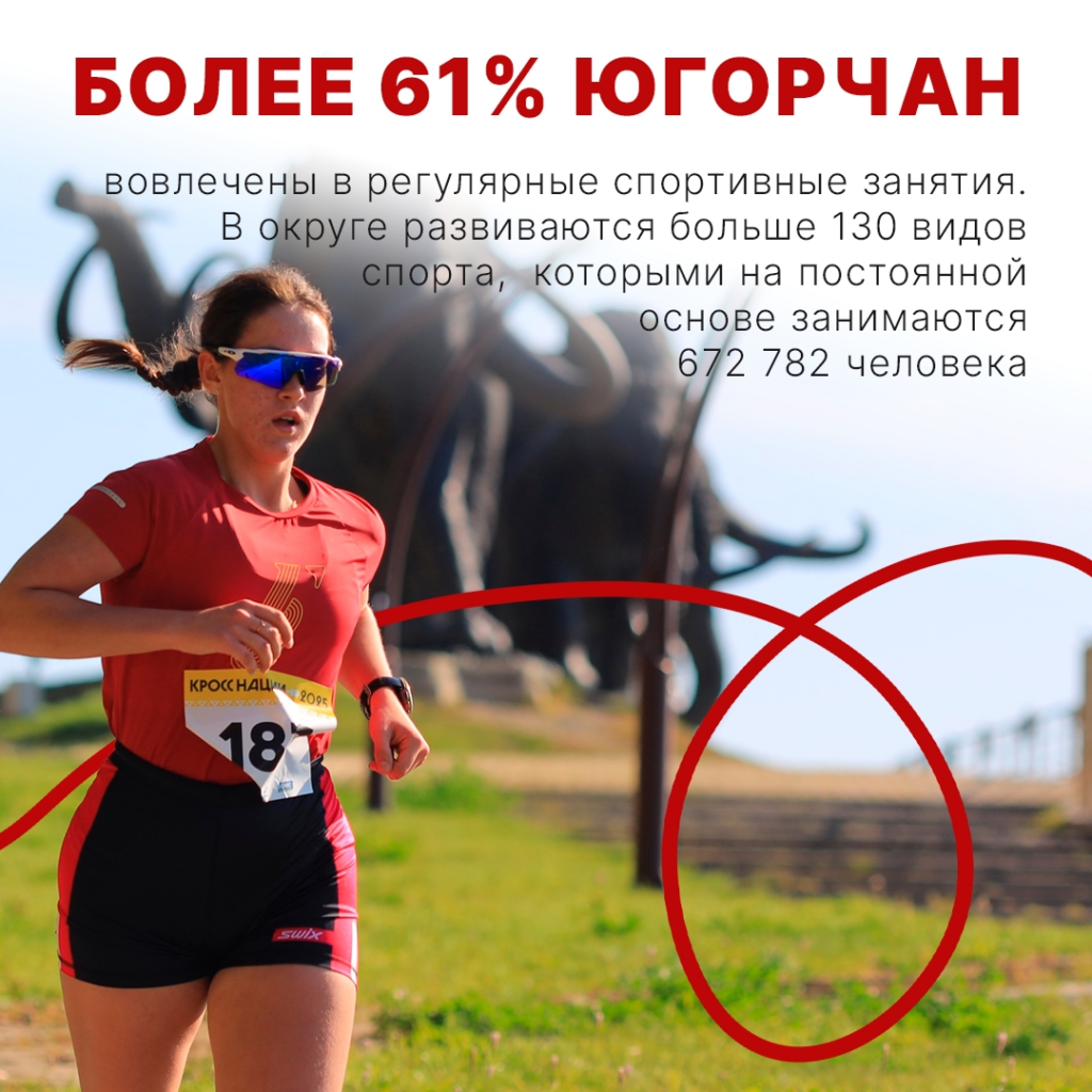 Округ вошёл в пятёрку лидеров по уровню удовлетворённости граждан условиями для занятий спортом: за год поднялся с 13-го на 4-е место. С новым рекордом югорчан поздравил глава региона Руслан Кухарук: