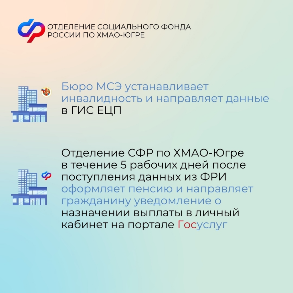 - Решение о назначении пенсии по инвалидности Отделение СФР по ХМАО-Югре принимает на основании данных о признании гражданина инвалидом.