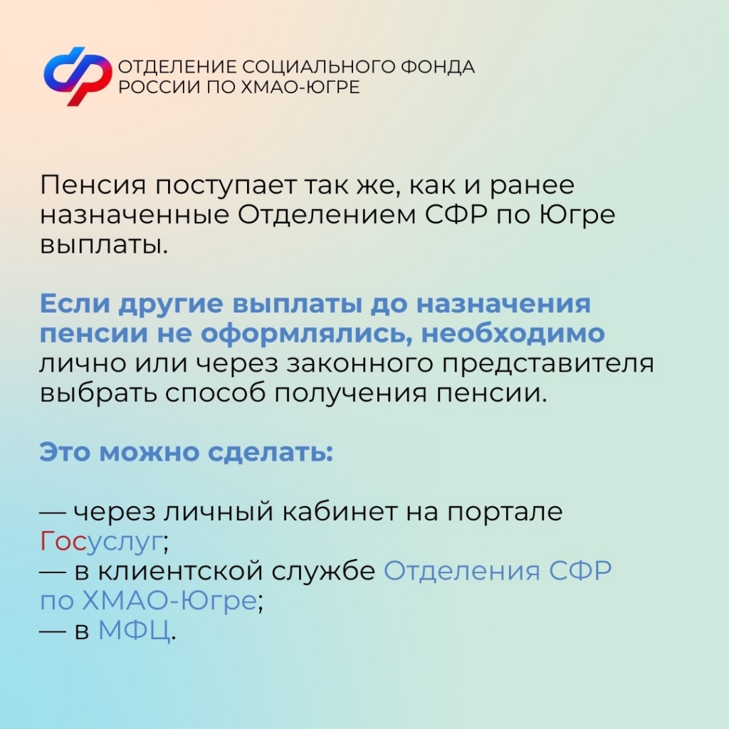 - Подавать заявление не нужно — Отделение СФР по Югре назначит пенсию на основании сведений из государственной информационной системы «Единая централизованная цифровая платформа в социальной сфере» (ГИС ЕЦП).