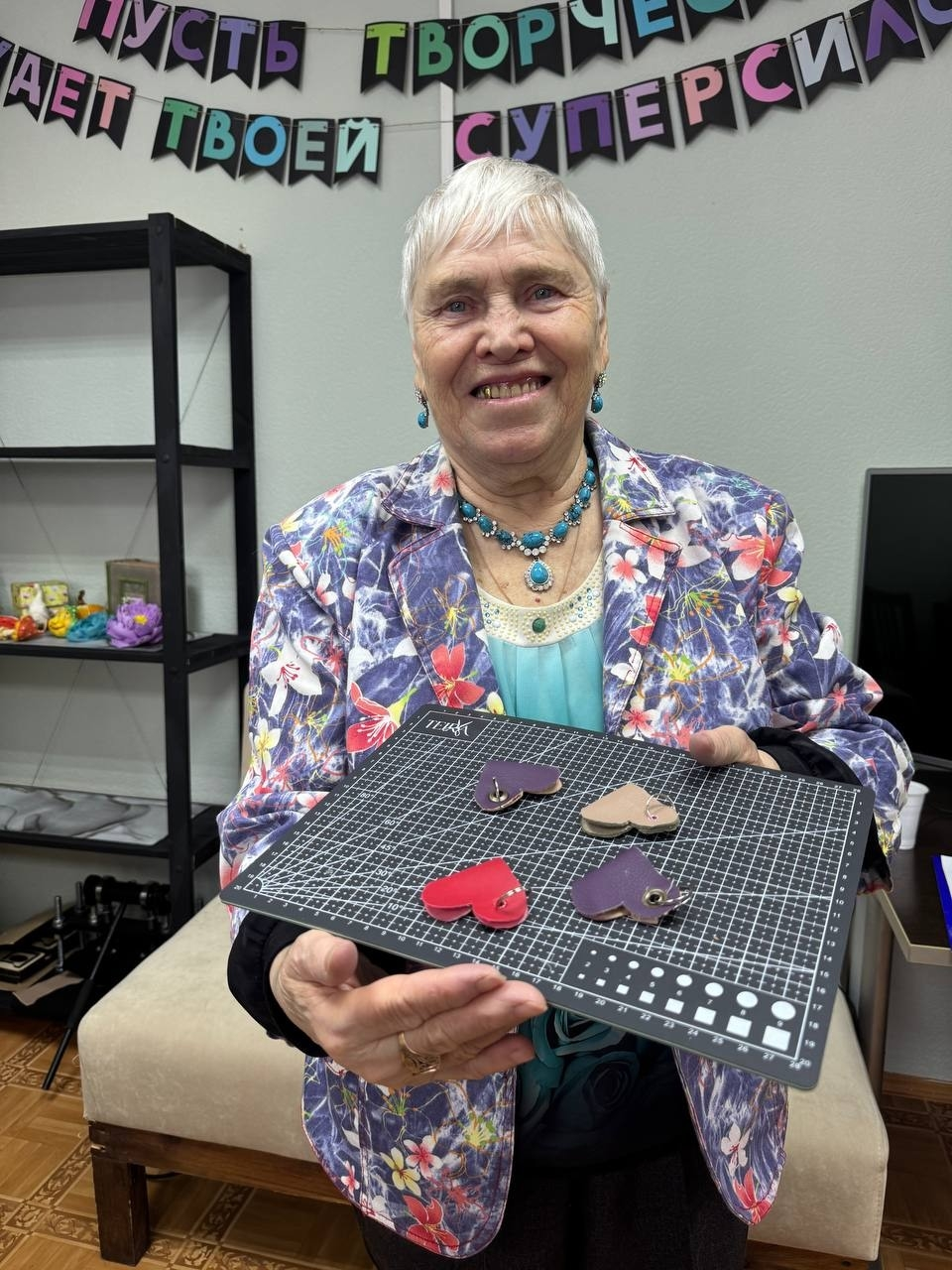 На этот раз наши участники познакомились с натуральной кожей, пощупали ее и даже вырезали валентинки (сердечки) в честь предстоящего праздника дня всех влюбленных.