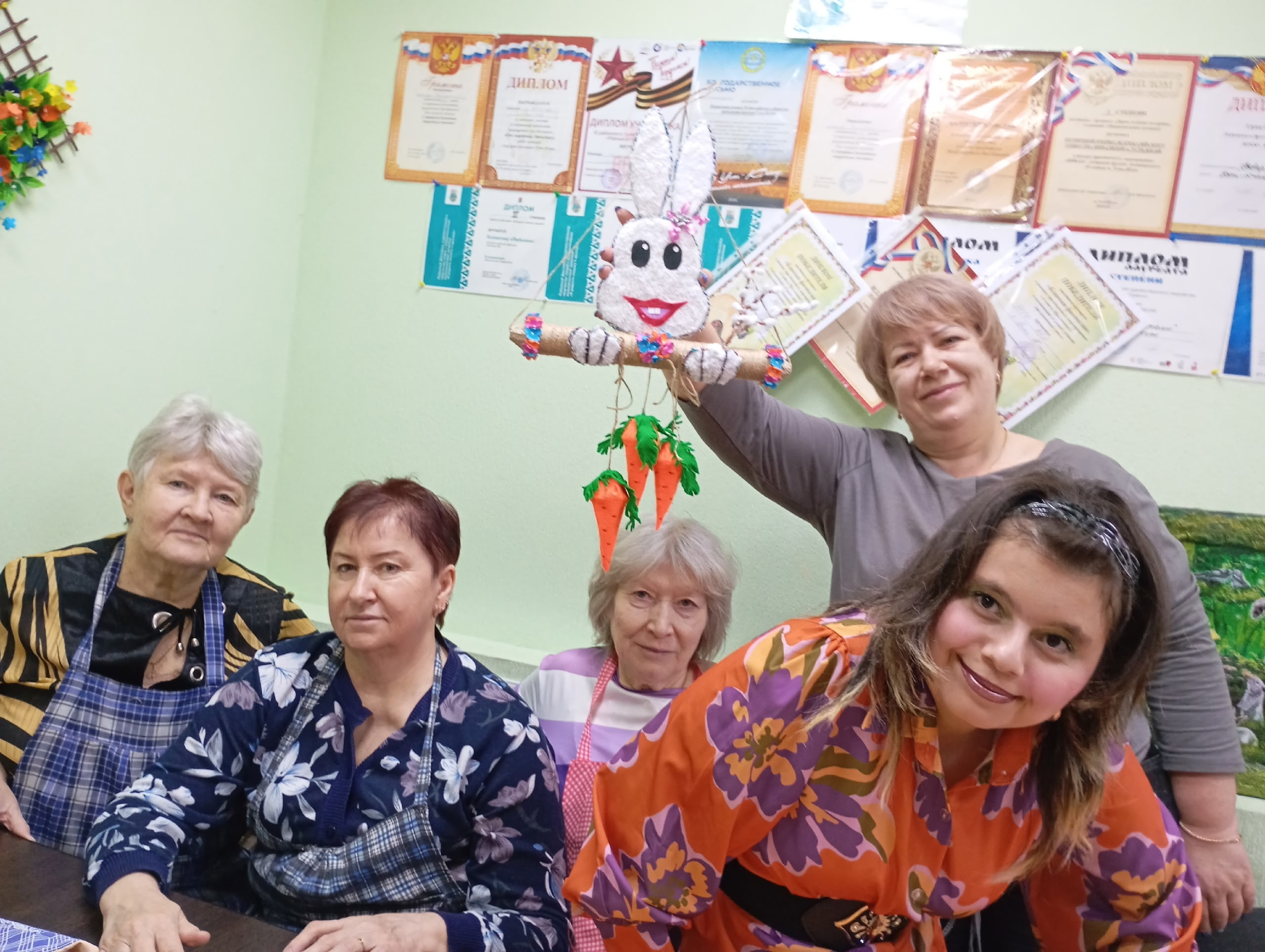 02.03.2026г. мастер-класс «Волшебство своими руками» из бросового материала, джута и фоамирана п/я НРОО ВОИ с п Усть-Юган изготовили коллективно, пасхальную поделку зайчик-панно.