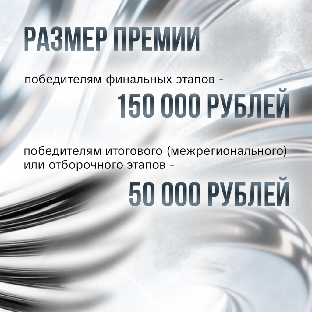 Размер премии победителям финальных этапов (Национального чемпионата) составит 150 000 рублей, победителям итогового (межрегионального) или отборочного этапов – 50 000 рублей.