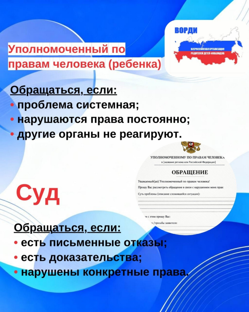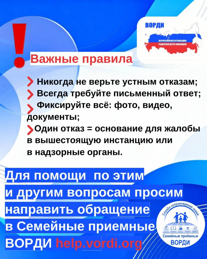 Если вам нужна консультация или помощь в составлении заявлений, обращений в надзорные органы, органы государственной власти или учреждения, вы можете обратиться в Семейные приемные ВОРДИ — help.vordi.org/.